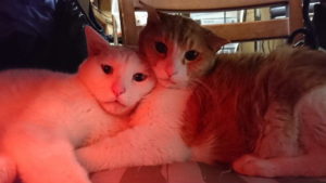 義弟1号ンちの猫ず。 今年12才になる、人間換算還暦越えのコンビ。 今時期はテーブルのヒーター下が定位置らしい。 たまに義妹がいたずらでヒーターの温度上げると 暑くて(熱くて?)床の上で伸びてるそうですが・・・
