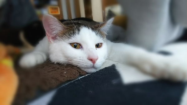 休み中の昼間。 ご飯食べた後の眠そうなはな。 ここでちょっかい出すと覚醒しちゃう・・・よねぇ。 私も一緒に寝ようかと思った(笑)