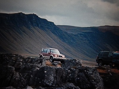 実際、映像でも島の景色はずっと雲が低く垂れ込め強い風が流れるシチュエーションで、どうも現地まで持って行って撮影したみたい。これまた25年ちょっと前に出ていたV6エスクード時代のカタログに掲載されていた風景になんとなく似通った雰囲気です。ラジアントレッドマイカの車体色が、こういう曇天の空の下ではアクセントになって実に良い演出になっています。いやまあ、だからなんだよ?という話で、だからこそ表題がミッテランさんの浮世話に出てくる名言なんです。