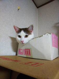 ふぅ・ちぃから代々の猫ず愛用の箱。 替えよう替えようと、未だ現役です(笑) 顎乗せるのにはイイ具合に誰かがつけたアールも カスタマイズが進み側面まで削られ始めました。 ・・・いよいよホントに新しくしないと 遠からず崩壊しそうな気がする・・・