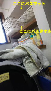 ナニがツボだったのか、バスマットとバスタオルを 棚から掻き出す遊びを繰り返す姫ちゃんず。 この後下の段のフェイスタオルまで咥えて落としてました・・・ 洗面所の床がタオルの海ですよ(泣)