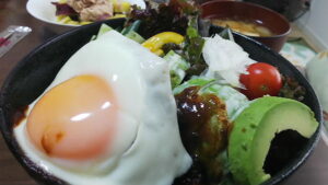 「お願い助けてっ!」と、 晴ちゃんからLINEきたのが週末の話。 昇降式のテーブル買ったら、重くて部屋に 運べないらしい・・・(35kgくらいあるとか??) で、新月サンに運んでほしいとSOSがきましたのよ。 行ったら玄関の内側でほぼ〝関所〟状態(笑) まぁ軽々と新月サンが奥に運び入れましたけど。 で、お礼にと頂いたお昼御飯が どーんって迫力のロコモコ丼。 大変おいしゅうございました。 ・・・夕飯要らないくらい満腹になったった