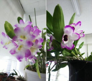 新月サンの部屋で冬越しさせたデンドロビウム。 気が付いたら花咲かせていたので連れてきました。 (誰にも見てもらえないんじゃ可哀想すぎる) 適当に育ててるから、よたってますけど・・・ これだけ咲けば上出来!