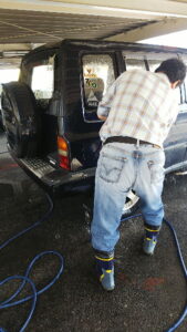 埃まみれになったのまちゃん洗いました。 おかしいなぁ。 スキー場も雪道も走ってないんだけど・・・ デロデロの粉粉でした。
