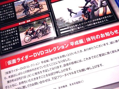 先日からでぃあごすなんとかが「仮面ライダーDVDコレクション平成版」とやらの発売を宣伝していて、あれ? と思って自分がそのでぃあごすなんとかの配本だと知らずに←かなり間抜け 買っていたあれは何だ? の反応で、買ったけど積読状態のそれを持ち出してみたら、やっぱりそれでした。