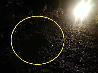 はて、俺が帰宅した時にはこんなもの無かったけどなあ。と、路肩に撤去してサニーを通過させながら周囲の気配を探査すると、反対側の切り通しの上の方に「奴ら」が大挙して潜んでいるのがわかりました。
