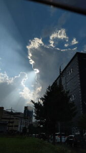 休日に新月サンと出掛けた帰り。 猫の物資が色々と無くなってきたので ホームセンターに寄り道したら、 雲行きが怪しくなってきて・・・ この写真撮った数分後に 車内で絶叫する羽目になろうとは(汗) 『天気の急変にはご注意ください』って お天気キャスターが言ってたけど まさかこんな急に降ると思ってなくて 洗濯物出しっぱ・・・(泣)