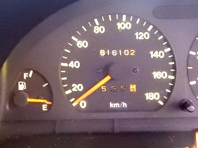 というわけで帰ってきていますが、行って帰ってきて全行程寄り道含めて約1300キロ。土曜の深夜に出発したので2日間雨にも降られず湿度も低く、往路はひとりでこなせました。が、空飛ブウサギまで戻ると土曜日の道のりが900キロ。寄り道したので1000キロ近くの移動で、人間より車の方が心配。うちの奥さんなんかアクセル踏みますから、タコメータ覗くたびにはらはらです。左の写真は最後のインターを降りる直前での走行距離で、インター手前のPAで給油。