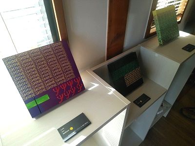 僕には絵心は無いので、言葉の表現とそのデザイン化の方に惹かれたのですが、壁一面に張り付けられたカレンダーの裏書きには、脅威を感じるほどの迫力があり、デザイン化されたボードには優しさが浮かび上がっていました。