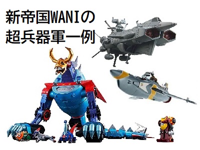 EX合金マイティジャックなどは、つくばーど基地にも配備されていますが、実は新帝国結成以前の和爾さんから供与されたものです。このうえアンドロメダやらゴーダムやら大空魔竜やらなんて、どこの財布から買い付けろというんだ? しかもたぶんきっと、絶対にこれだけじゃない(笑)