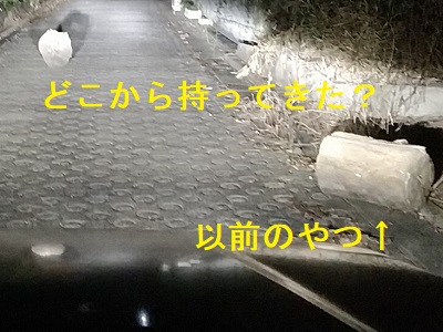二個目の丸太をいったいどこから持ち出してきたのか謎ですが、路傍の藪にどかしておいた前回のも再び遊び道具にしていたようです。