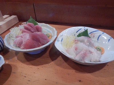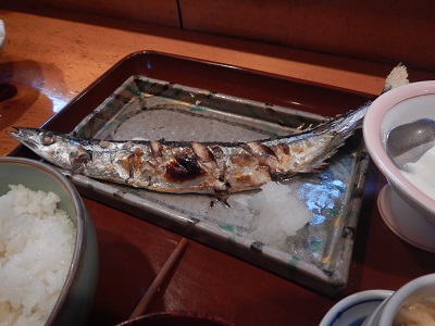 仕事で那珂湊の街に出て、これを片付け大洗町の行きつけの小料理屋を訪ねると、大将が「ことしの秋刀魚は良いですよ」と言われるので塩焼きの定食をお願いしました。でも刺身も食いたくて、鮪と鮃を見繕ってもらい、定食ができるまで刺身をつまんでいたところ・・・