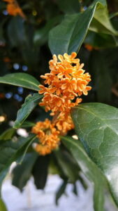 私の記憶が確かなら、9月の半ば過ぎに 一度咲いた・・・はず。 だってゴミ集積所のネットに散った花が 降り注いでいたから。 ここに住み着いて、初めての出来事かも・・・