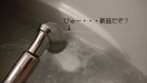 数日後、新月サンが交換用のホースを買ってきてくれましたが今度は混合栓のネジが合わないという・・・(泣)