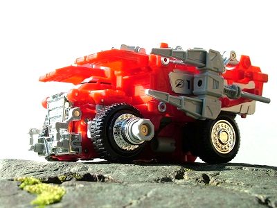 次に来るのがやっぱり馬鹿知識範疇で、「レスキューフォース」のレスキュードーザー。ダンプトラックのくせして何故ドーザー? というところは、この戦闘形態を見れば納得です。フロントから展開するバケットと、荷台を組み合わせて、こいつは敵をどつくばかりか噛みつきます。でもダンプ形態時の基本全長は意外に控えめな10m程度。コマツの重ダンプって、ドーザーと連結する母体のレスキューセイバー(16m)並みなので、立派な巨大メカニックなのだと再認識します。