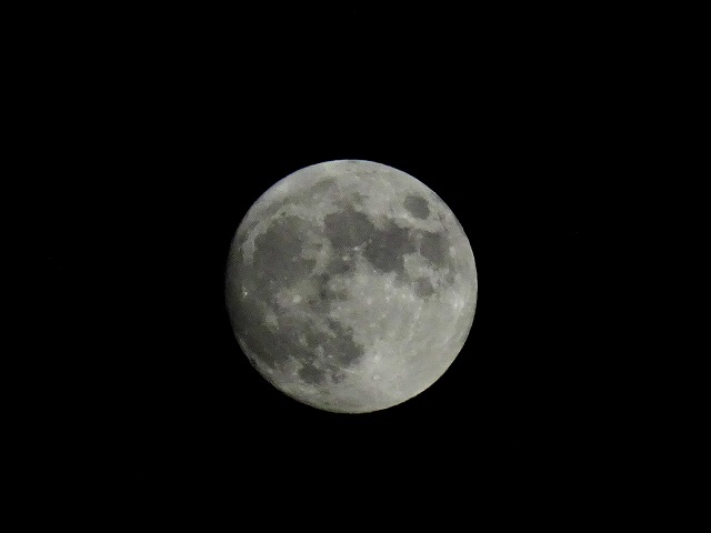 しまった。満月は明日だ(汗) 先月撮ったよりは陰影がハッキリしてるけど やっぱ手持ちじゃダメかー・・・ 明日の月食撮れるかな?
