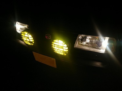この明かりの位置関係、初代の頃は規制も緩かったのです。今じゃバンパー上の設置ができない。