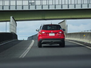 車体の両サイドをマスキングしたSUVが忽然と現れ、目の前を走り去っていくのです。しかしマスクされていないフロントグリルとSマークはどう見てもエスクード!