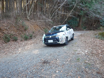 それは筑波山中のところどころ凍結したフラットダートの林道で、走行状況を「隊列にしない」ため、インターバルスタートで1台ずつ走ってくる仲間たちのエスクードを撮影する待機中のことでした。