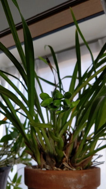 今年も花芽がついたシンビジウム♪ 1本だけだったけど、新月サンの部屋で越冬してます。 寒さで枯れませんようにー・・・