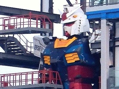 まあね、監督ご自身が「眼玉が2つでツノついてりゃみんなガンダム」と揶揄したこともあるわけですから、これもまたガンダムに違いないのですが、こりゃ確かに背後で支持しなかったら歩くどころか自立だってつらいでしょう。立像って、動かさない方が動作の想像ができるんだなあと思わされました。少なくともお台場に作られた最初のやつはそうだった。どうせならこの足場の中に斜めに傾けて格納しておけば、それっぽく見えたのに。