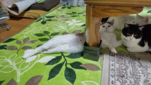テーブルの上に乗って固まってましたよ。
