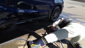 這いつくばって車体の下を洗ってた新月サンが