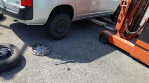 あおちゃんとサクシードのタイヤを替えはじめたら