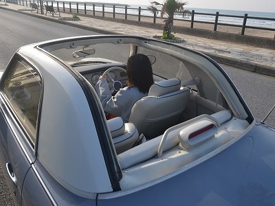 ようやく屋根を開けることになりました。言わずもがなボタン一つで電動開閉というものではなく、手動式です。けれども悔しいことに、エスクードの幌外しなんかよりずっと簡単。霙一人で何の問題もなく開閉できます。