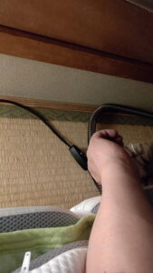 枕元のランプ消そうと手を伸ばしたトコで 力尽きたらしいです。 ・・・お疲れねぇ。