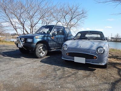 エスクードのコンバーチブルは、50歳を待たずに来るべくして手元にやって来ていますが、まさかフィガロが(なんせフィガロですよ。守備範囲にもないよ)これと並ぶ風景を見ることになろうとは。