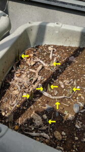 新月サンの大好物が(笑) 「今年は植え替えしてやるかー」とか言ってたのに。 休みっちゃーどこか出かけちゃったり天気悪かったり。 気付いた時には今年の芽がでてましたわよ。 ・・・仕方ない、もう一年頑張ってもらうか。