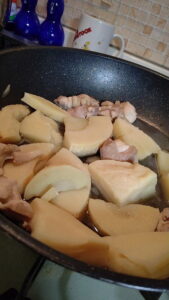 タケノコご飯にお味噌汁、鶏肉との炒め煮