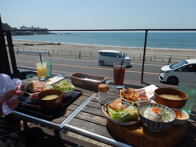 材木座海岸は由比ガ浜、坂ノ下、七里ヶ浜、腰越と並んで鎌倉を代表する海辺ですが、昼飯を食いに行くとなかなか競争率の高いところでもあります(突然話題が変わるなあ)。予約を取っておけばいいのでしょうが駐車スペースは予約対象にならない。開店後あっという間に埋まってしまうのが「海沿いのキコリ食堂」の人気です。運よく開店五分前で三番目の入店権利を獲得でき、夫婦で昼飯をいただいてきました。夏日でも風が適度に流れて心地よい昼どきです。