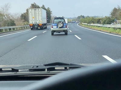 取材先が近場だったので普段よりのんびりと出発し、流れに乗せて淡々と走っていたらば、バックミラーに猛烈な勢いで追い越し車線を近づいてくる赤いハスラーが現れました。