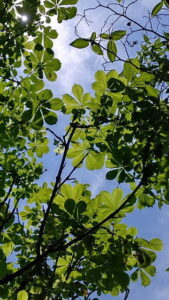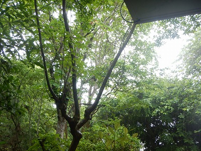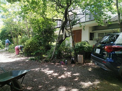 戦力外自己申告もしていられないので、草刈りを手伝ってもらいながら脚立によじ登るというよりもう這い上がり(どうやってだ)、梅やら楓やら建物に枝が接触してくる部分を高枝切りバサミでうめき声を上げながら枝打ちしましたよ。誰も写真撮ってくれないからその証明できませんが。このあと、新月さんがいるあたりは、草刈と枝打ちした廃棄物で人間が入っていけないくらい←言い過ぎ の山が出来上がりましたが、やっぱり田舎です。この木陰に居ればすずしー。