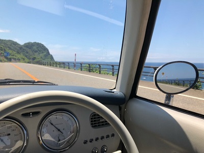 「子」ったって二人ともいい大人ですから勝手に言って来いやですが、さてクルマが壊れなきゃいいけどねー。と、クルマの方が心配な長距離ですが、夜中の移動かつ東北道の雨天気など、気温の低い時間帯に走っているのでまあまあ良いペースで動けているようです。昼どきに送られてきた写真を見ると、あつみ温泉だとか加茂水族館だとかを回っていやがりますね。それにしてもさすがの晴れ女です。雨をも味方に付けていった先でこの晴天とは恐れ入った。