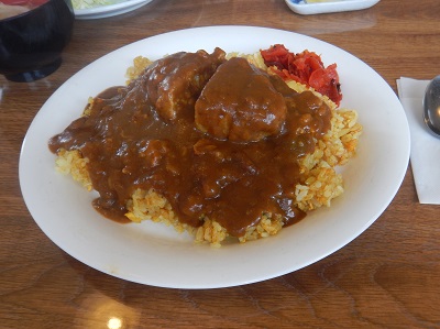 一合ちょっとのドライカレーにルーをのせたスタンダードから、とんかつ、チキンカツ、ハンバーグ、エビフライのいずれかをトッピングしたバリエーション展開。量的に食ったら汗だくになりますが、米の炊き込みにずいぶん水けを残した感じでドライという風味ではなかった。「コルタカは昔はイギリス領インド帝国の首都でした。そこに敬意を表してインドの雰囲気を名前としたんです」というのがお店の説明でした。評判ほどに辛くはなかった・・・