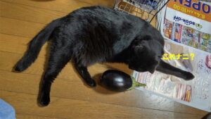 採るタイミングを逸して、巨大化した米ナス。 計ったら15cmくらいありました。 それにしても・・・ ツヤツヤと丸い辺りがでんのお尻によく似てる。 この後おいしくいただきました。