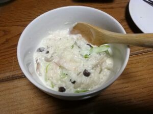 2束買ったアスパラガス。 太い方は焼いて食べましたが 細い方は多分硬いだろうと思ったので 細目に刻んでリゾット風のおじやに。 新月サンが黙々と食べていたので 多分、味は良かったと思われ・・・