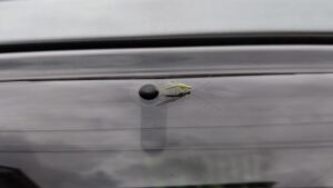 昼間、家に戻った時にあおちゃん停めたら くっついてました。 ・・・いつから??? 乗った時には気が付かなかったけど 走ってる最中に止まるとも思えないので 乗る前からいたんでしょうねぇ。 (注意力散漫・・・) さて、会社に戻ってもまだ居たんだけど その後どうしたかしら。