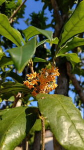 近所の公園。 え?今?って時期に剪定されてほぼ丸坊主にされたので 今年は花咲かないと思ったのに・・・ 気が付いたら、ちょっとだけど咲いてました。 本当にちょっとだけなので、香りもほのか。
