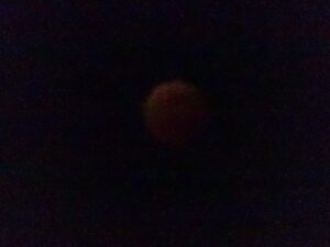 新月サンが「お月見する?」と利根川っぺりの 田んぼの中まで連れて行ってくれました。 (街灯も何もない農道なので真っ暗) 三脚使えばまあまあ写るもんだなーとか 思っていたんだけど、流石に皆既月食本チャンは 無理だったわ。 むしろぼんやりではあるけどスマホで撮った方が それっぽいって・・・(汗)