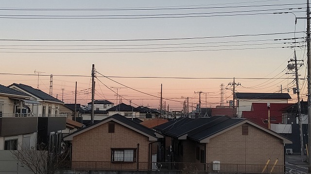 まるで朝焼けのようだわ。 日没直後、ぐるりと地平付近が 夕焼けで赤くなってました。 そろそろ一番夜が長い日だわねー。