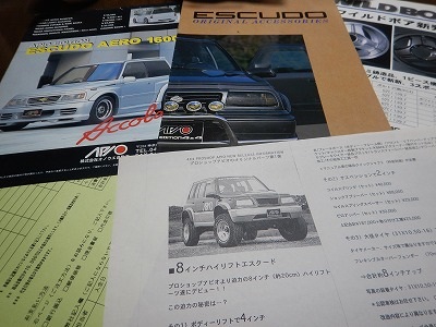 昨年末の焚火忘年会に、エスクードОBのおしゃとさんが来てくださった際、初代エスクード、二代目エスクードのカタログや掲載雑誌、ムック本などを沢山届けてくれました。その中で目を見張ったものが、90年代のアピオによるエスクード専用カタログ。尾上会長の話では、ローダウンキットはアピオではなく別のショップが開発していたとのことでしたが、アピオもちゃっかりと自社カタログ(リーフレット)にてラインナップしていました。