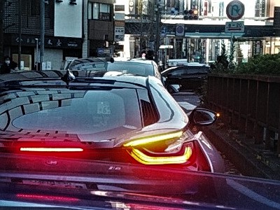 BМWi8の後ろに偶然並んだらば、思いきりの良すぎるリアフェンダーの切り欠きに驚かされました。