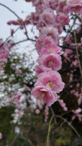 近所の枝垂れ梅。 八重のピンクが可愛らしくて 毎年楽しみにしてるのよね。 今年も元気に満開です。