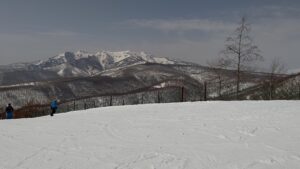 先生がご多忙なので、自主トレしに尾瀬岩鞍へ。 天気よーし・・・良すぎ!! 道中、いつもならばまだ白い田んぼや山が 既に雪の欠片も無くなってます。 スキー場のリフトの下も茶色い地面がそこかしこ。 去年も今くらいにスキーしに出掛けたけど やっぱり雪解けも年々早まってるのかしらねぇ・・・ そして、昼食に新月サンが超珍しいチョイスを(笑)