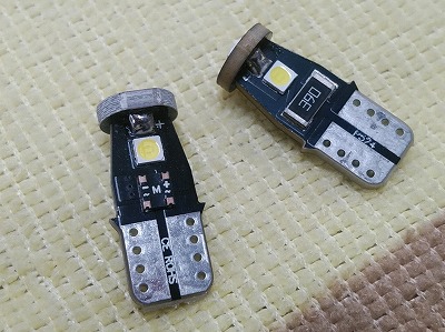 右のポジションランプが点灯していないことに気が付き、なんだろなーポンコツだからなー接触不良でも起こしたかなーと、これがたまたま久喜市内で仕事中だったのでフジ・オートに足を伸ばして診てもらいました。右が組み込んであったバルブ、左が新品です。LEDユニットの劣化具合が見てとれます。点灯はしていたのだけれど、ほとんど発光しない状態でした。奇しくも2019年の3月15日にバルブを交換し、18日付けでブログに載せています。ほぼ4年で寿命が来ました。