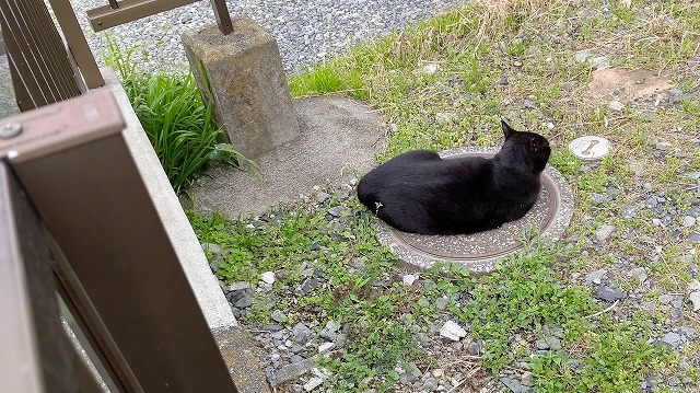 近所で見かけた黒ネコちゃん。 でん助よりも身がしまってて、黒い。 (でんは最近こげ茶っぽくなってきた・・・) しらーんぷりしてる風で、耳は全力で こっちの音拾ってますけど?(笑)